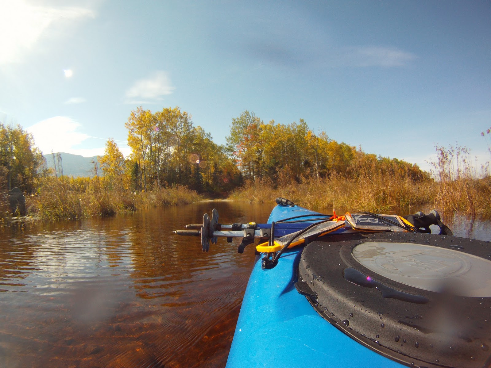 We had two scheduled pit stops on the way to Maine: once at Ziehl’s family’s house to retrieve some extra dry bags and a carbon fiber paddle, and once at my family’s house to pick up the boats and life jackets. Stop number one went just fine, stop number two on the other hand marked the first official mishap of our adventure. We pulled the kayaks out of the basement, and got ready to throw them on the roof with the Thule J-bars when we realized that I had left half of the hardware in the back of my car in Boston. Instead of going all the way back to Boston, we went back to Ziehl’s house and took the hardware from his mounts. Even with this major blunder on my part we still managed to hit the road around 1 PM. With Ziehl doing the driving this time, I took charge of the co-piloting for the weekend. When Tripp and I did this trip last fall, we had a Hell of a time finding the campground in the dark with no cell service. With cell service we could easily have used the GPS in my phone to figure out exactly where we were, but without cell service the navigation software can’t download the map tiles for the given region. This time around, I made sure to pre-cache map tiles in advance. Just because I love redundant systems, I used Google Maps Labs to cache tiles in the Android Google Maps app, and I pre-cached the same region in Backcountry Navigator Pro. All of this may seem slightly excessive, but we felt a lot better about travelling on roads of dubious condition in the dark in unfamiliar territory with the ability to scheme up a Plan-B in a pinch. The next order of business, was getting the GoPro squared away for use with the Kayaks. This was pretty much the maiden voyage of the GoPro, so I wanted to make sure that I had all of the settings dialed in before we got out in the woods, where I’d likely be too busy or tired to take my time and do it right. This was actually a non-trivial activity. The GoPro is pretty incredible from an industrial design standpoint, but the UI leaves a bi to be desired. Given the circumstances (only two hardware buttons to work with), they actually do a pretty good job. Anyhow, I set it to take one hi-res photo every 60 seconds for the duration of the trip. It seemed to me that video of 7 hours of paddling might be a bit tedious, but tons of still photos might yield a few cool shots. After a few stops for gas and sandwhiches we rolled onto the access road to the Round Barn Campground where we would drop our kayaks. By now it was about 7 PM and not yet totally dark. We found the waterfront day use area of the camp ground and prepared to unload the kayaks in the fading light. Right then, we ran into a crazy old Irish guy watching the sunset from his VW Eurovan. We end up telling him our plans for the weekend and were excited hear that he had just run into two other people doing the same loop as us, but in the opposite direction. Until then, we were worried that we might be planning an overly ambitious trip. The next thing he said was cause for concern; we told him how we intended to get from Round Barn to Trout Brook and he informed us that last time he was down that road a bridge was missing and that the only option was to ford the stream with steep embankments on either side. We decided to take a shot at it anyway – if it was really in bad shape we’d have to find another way around. The series of setbacks ensued, summarized best in this map: