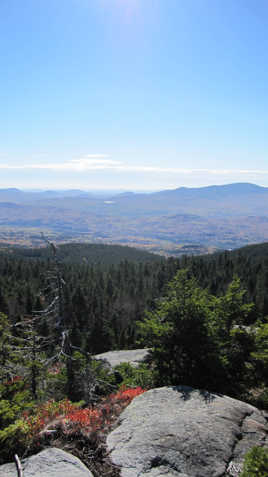 By this stage of the game we’ve covered some serious ground (upwards of 10 miles), hit 3 peaks, and been up since 5:40 (it’s now past 6 PM). Having said that, I almost completely spaced out for the descent and don’t really remember any of it. We catch a few glimpses of Stratton Pond as well as the road where we left the car. Eventually we get to the bottom of the mountain and back to the road.