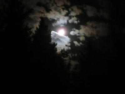 Here’s what happened.  We headed west from Round Barn down East Flagstaff Road, which according to the map connects with West Flagstaff Road and eventually goes straight past Trout Brook Campsite, where we intended to camp.  This was supposed to be about 15 miles long and we expected it to take an hour or so. East Flagstaff Road was in pretty rough shape, but Ziehl’s Pathfinder was up to the challenge.  After about an hour of plodding through the woods in 4-wheel drive we came to a huge red steel gate.   We’d only come about 3 miles.  After swearing a whole bunch we looked at the map and realized that we must have taken a wrong turn about a mile back.  We turned around, found the turn we missed and instantly recognized why we’d missed it in the first place.  The road was totally grown in with 10 year trees.  We ended up backtracking the the entire three miles and finding a road to the south of the range called Carriage Road.  Carriage Road was another route of dubious quality.  We passed it on the way to Round Barn and it was just a dirt path through the woods.  We had no idea if we might encounter similar troubles.  The only other alternatives would have taken us significantly out of our way. The Carriage Road turned out to be smooth sailing and we quickly popped out of the woods at Rte. 27/16, which apparently had been destroyed in several places by Hurricane Irene.  In many places it was still down to one lane.  We arrive in Stratton around 9 or 10 PM in search of Trout Brook Campground which should have been a convenient spot to spend the night.  All we could find was a large, swampy, clearing full of dead trees and brush.  Maybe more evidence of Irene?  In any event, we decided to just drive to the trailhead and camp there. According to the map, the trailhead was at the end of Reservoir Road in Stratton.  We found Reservoir Rd. easily and quickly found that it was gated off by a sparkling new, chain link fence.  Starting to run out of patience, we jumped out of the car, GPS in hand and followed a snowmobile path around the back of the fenced off property to the trailhead.  From the trailhead parking area, we were able to backtrack out to the road and back to the car via some dirt road, not on any of the maps we’d looked at.  It was at least 11 PM and we were anxious to try out the Gritty’s Halloween Ale we’d picked up, so we grabbed our headlamps and threw together a hasty campsite in the parking lot.  Turns out the view from the parking lot wasn’t too shabby…