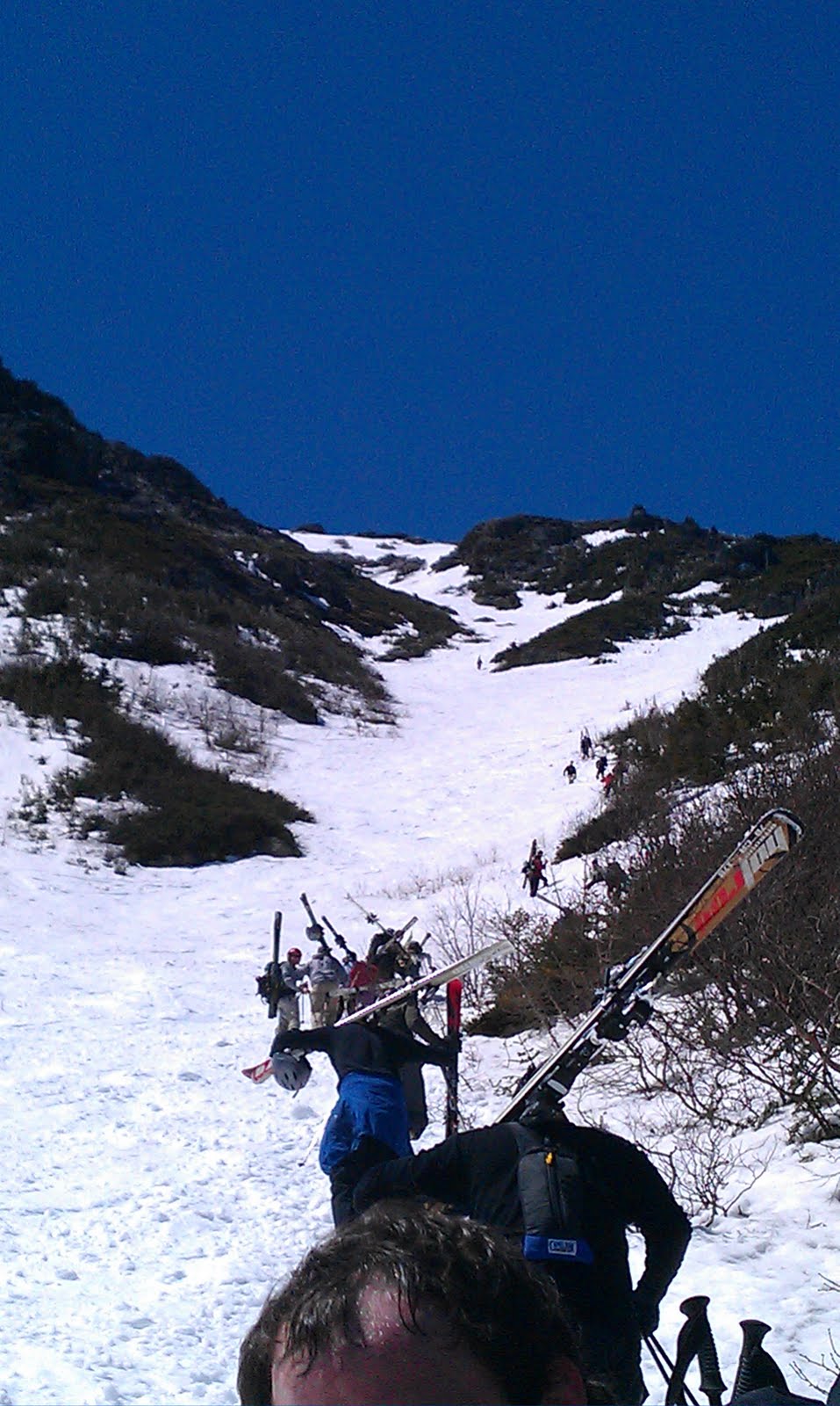 We set out sights a bit higher for the second day, and skinning up past our previous days top out over the looker’s right shoulder and neared the summit ridge. Up there we found cool lines and some powder. Sweeney wanted to push on, but Kelly and I were content to hang out. I found myself in especially rough shape after being sick for months.